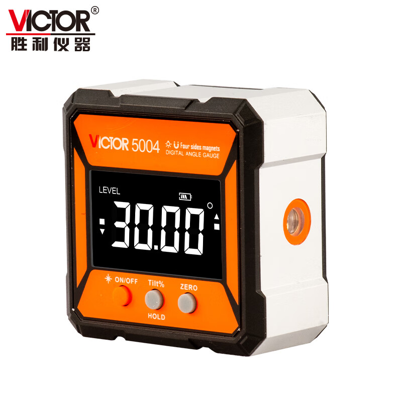 VICTOR 5004 是一款四面带磁的双侧激光数显倾角盒,其四角内置强力磁铁可吸附于被测工件上进行测量;双向激光扫描,水平定位;带背光反显屏设计,读数清晰;便携尺寸,方便与其它测量工具配合使用。集多种优点于一体,是建筑装修、土木工程、机械加工、工业自动化领域的重要测量工具。