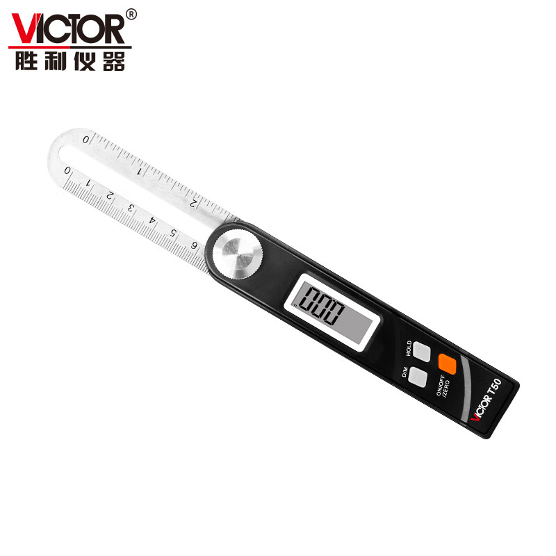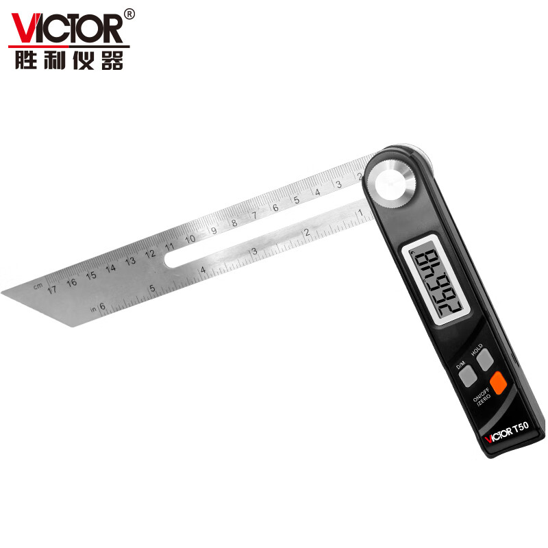 VICTOR T50 数显滑动T形角度尺,综合了钢直尺、传统的木工活动角尺和数显角度尺的特点,具有角度测量范围0-360°以及0-17cm的长度测量范围,特别适合木工精密测量、锯片角度设置等使用场景。