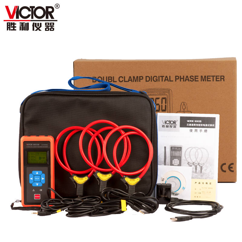 VICTOR 9003B三通道柔性线圈电流监控记录仪是为现场在线同时监测、记录1~3路交流电流而精心设计制造的,由主机、柔性电流钳、充电器、监控软件、通讯线等组成。广泛适用于电力、通信、气象、铁路、油田、建筑、计量、科研教学单位、工矿企业等领域。特别适合排线密集的场所、大型异形导线、继电保护、可控硅整流、变频调速、半导体开关、功率电子转换设备、电弧焊接等信号严重畸变的工业环境的电流测试。