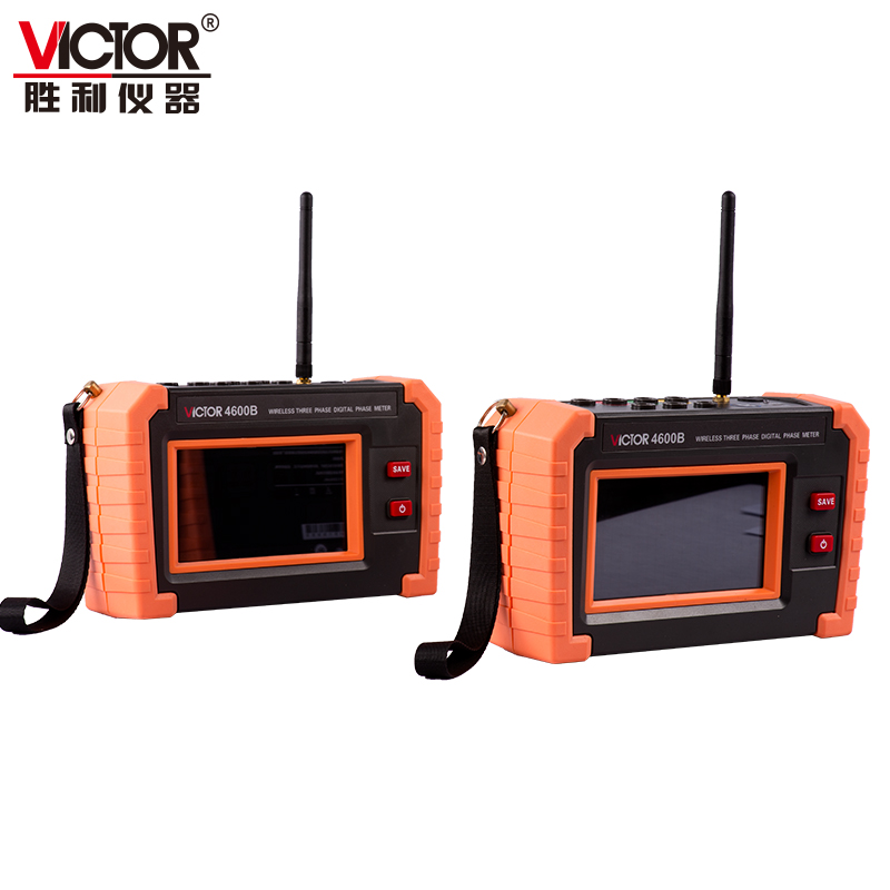 VICTOR 4600B无线三相相位伏安表用于无线同步测量变电站二次回路中不同测量点的电压幅值、电流幅值、电压相位、电流相位、频率、功率等参数,还能够同屏显示主从机的三相电压和电流的矢量图。无需临时拉线,解决智能变电站中不同点电流电压无法测量的问题。仪表由2台手持测量终端组成,2台终端均可设为主机或从机,产品操作简单、使用方便、测量快速、稳定、结果可靠。