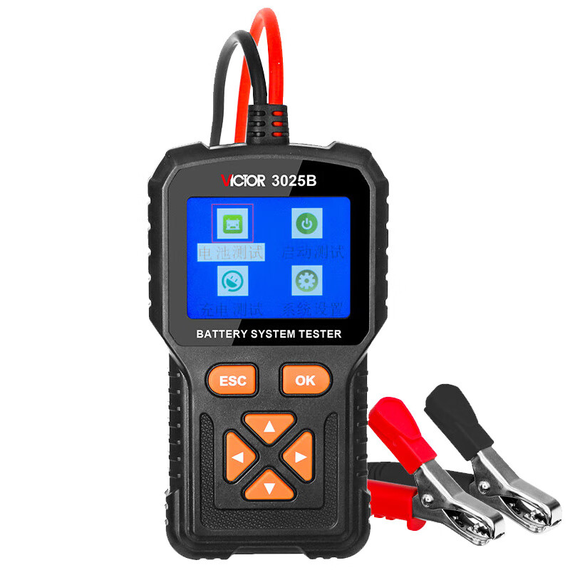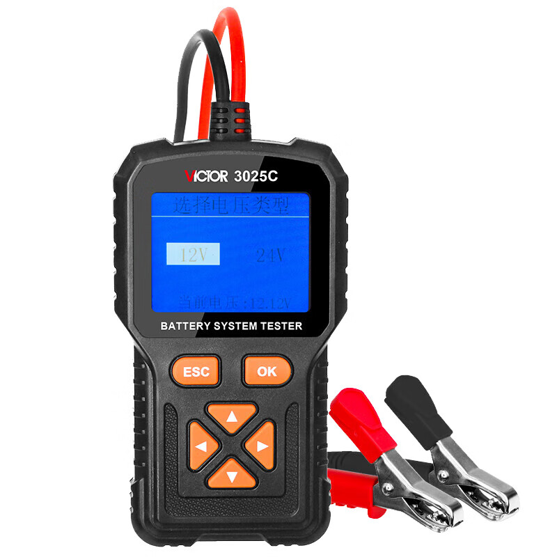 VICTOR 3025A智能蓄电池检测仪适用于12伏特及24伏特铅酸蓄电池性能检测工具,及车辆启动过程、充电过程、用电负荷过程蓄电池性能测试工具。仪器整机设计精良、操作方便、读数精确、功能齐全、搭配大屏液晶显示,内部使用精确电路和强大数字处理单元,采用四线开尔文测试接法完成一系列复杂数据的采集及运算后得出每项测试数据。仪器内部加装输入保护,能有效防止正负极性接反、电压接入过高、测试钳头接触不良,使用更加安全。