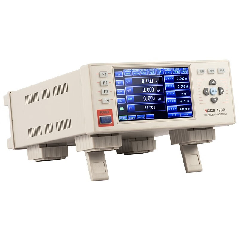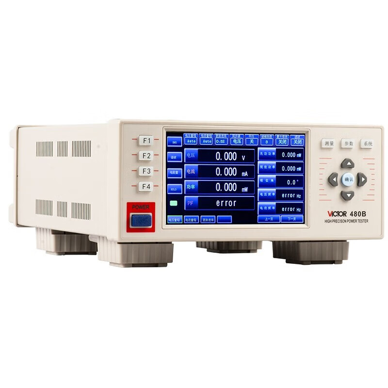 VICTOR 480B高精度功率计的设计采用了先进的32位高速处理器和双路24位AD转换器,具有高精度、宽动态范围、结构紧凑灵巧等特点,是新一代触摸屏数字功率分析仪。
