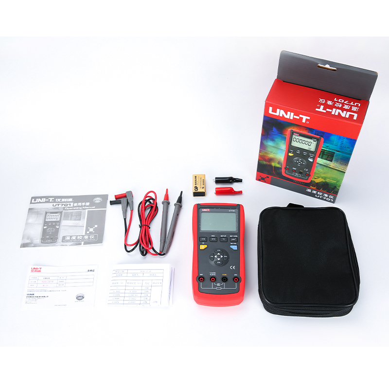 UT701是一款性能稳定,高精度手持式校准仪。能提供电压、电阻及10种热电偶,4种热电阻的输出。热电偶输出提供自动、手动两种冷端温度补偿,具有自动步进和自动斜坡功能,25%步进功能可用于快速线性度检测,其使用方便、性能高效,是非常适合温度校准人员的测试工具。