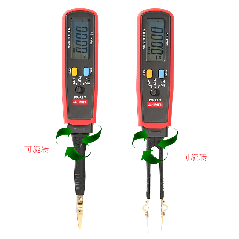 UT116A是一种小型化、一体化的实用新型测量仪表,具备LED、通断及大36V直流电压测量功能,能自动识别电阻、电容、二极管,方便筛选元器件,主要应用于SMD电阻、电容、二极管(RCD)参数的测量,是电子工厂和电子维修的好帮手。