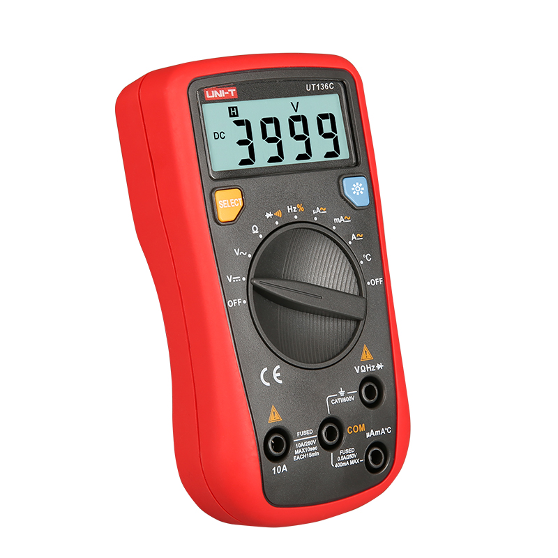 UT136系列数字万用表是一种功能齐全,性能稳定,功耗低,结构新潮,安全可靠的小型手持式自动量程数字万用表。是广大用户随身携带的理想维修工具。可适用于家庭、学校、冶炼、通讯、制造、石油、国防、电力、化工等行业,是电路/电力设备维护和维修工具。