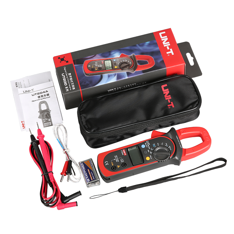 UT200系列交直流数字钳形表,具有交直流电压、交直流电流、电阻、电容、频率、温度、连通性和二极管测量功能,是一款全量程的过载保护电路,功能齐全、性能优异的电子/电工仪表。可广泛应用于电子、电力、石化、冶炼、制造、石油等行业,是设备维护、检修的理想工具。