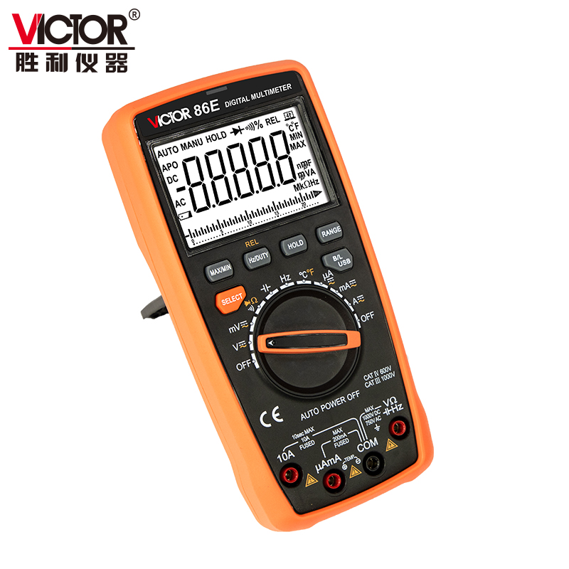 自动挡4 1/2 位数字多用表,带 USB 电脑接口,是一种性能稳定、用电池驱动的高可靠性数字多用表。仪表采用 21mm 字高 LCD 显示器,读数清晰;具有数据保持和自动关机功能,更加方便使用。