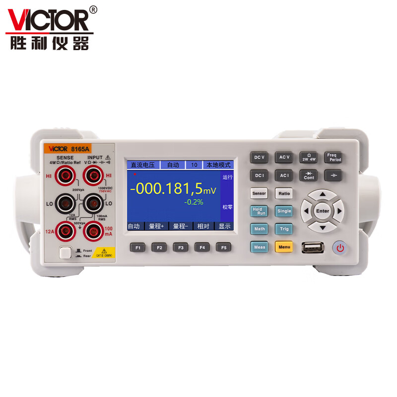 VICTOR 8165/8165A 是一款 6 1/2位 高精度、高性能的台式数字多用表,配备3.5英寸高分辨率彩色显示屏、内嵌智能操作系统,它能提供更多的信息、更多的功能、简易的操作、更宽的测试范围,其系统的构建更灵活、方便,它是一款可选择2线或者4线电阻测量的新型数字万用表,是各类大专院校实验室常用工具。