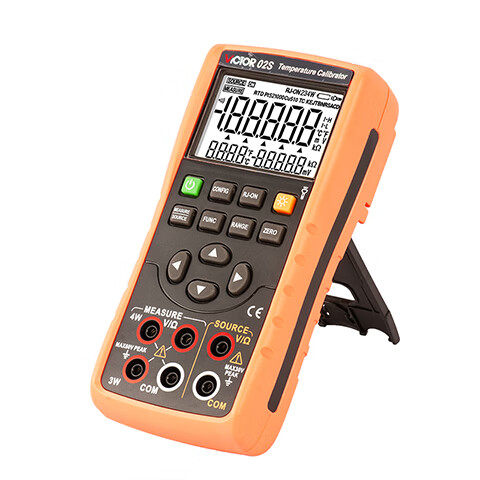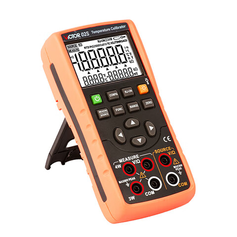 VICTOR 02S 温度校验仪(以下简称校验仪)是一个由电池供电,能测量和输出电参数和物理参数的手持便携式仪器。可用于测量直流电压、电阻、热电偶、热电阻;模拟输出直流电压、电阻、热电偶、热电阻。